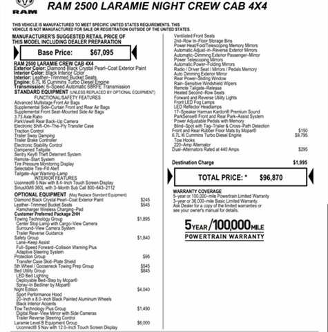 2024 RAM 2500 Laramie Night Edition, 6.7 Cummins 4x4 Loaded, Leveled with 20 INCH FUEL BEBEL RIMS AND 35inch NITTO RIDGE GRAPPLERS ($96k Window Sticker)